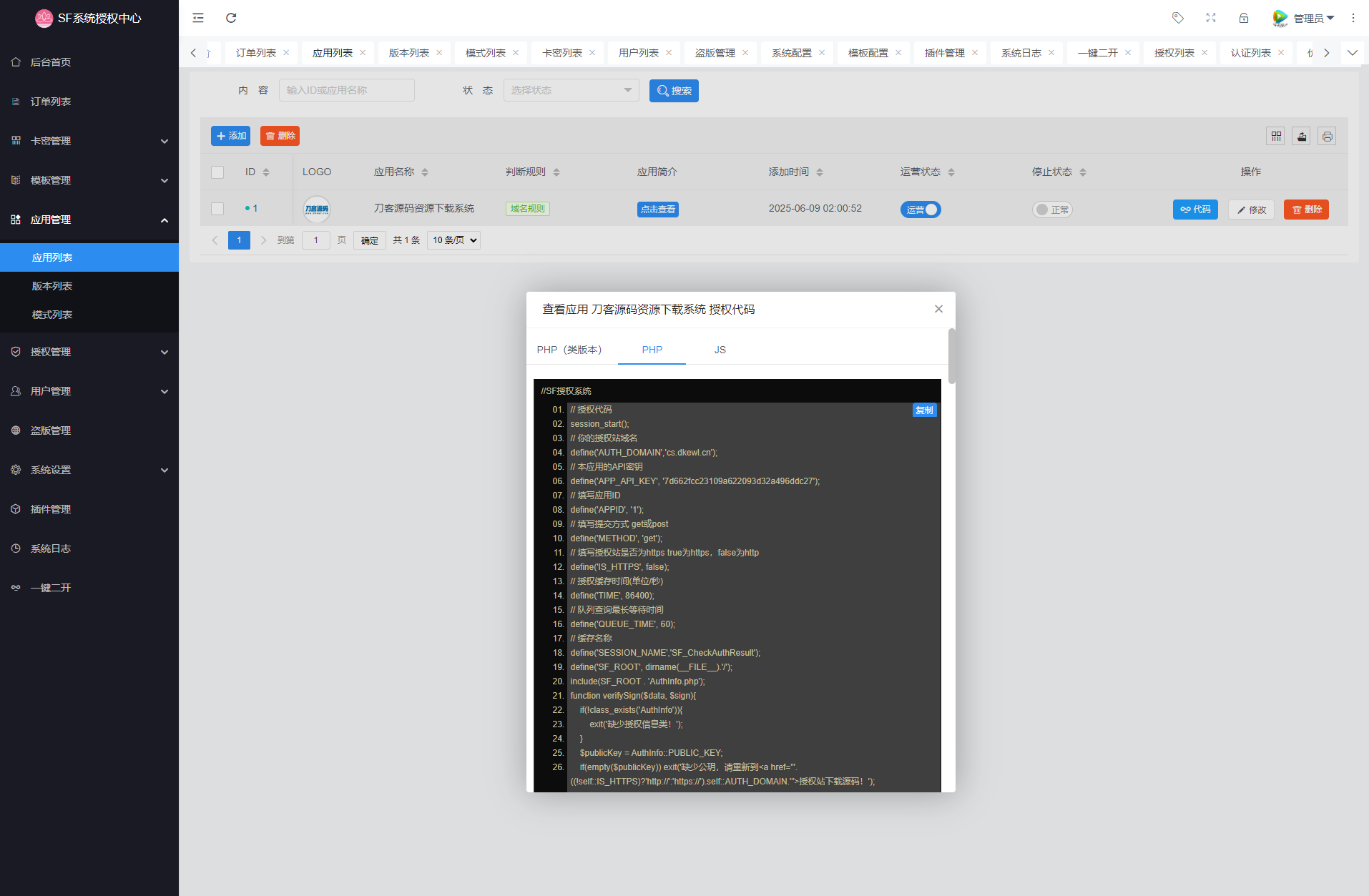 SF多应用综合验证系统是一款基于 thinkphp V6.0.9 和 EasyWeb iframe开发的系统