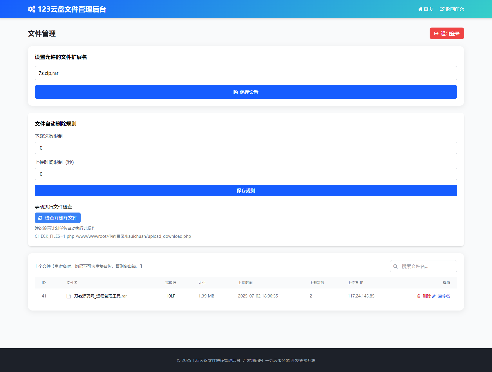 详情 评论 问答 最新临时文件快传系统源码 轻量化 带后台 首发站长9天前更新关注私信0415最新临时文件快传系统源码 轻量化 带后台 首发此内容为付费资源,请付费后查看¥3.5年费会员免费永久会员免费暂时无法购买,请与客服联系您当前未登录!建议登陆后购买,可保存购买订单付费资源已售 5 简介: 最新临时文件快传系统源码 轻量化 带后台 首发 轻松上传文件并生成提取码分享给他人,无需注册,方便快捷。 鸣谢投稿人:一九云服务器 图片: © 版权声明文章版权归作者所有,未经允许请勿转载。THE END源码资源网站源码 喜欢就支持一下吧点赞5 分享QQ空间微博QQ好友海报分享复制链接收藏如何下载资源?您可以通过搜索或浏览分类列表来找到您期望下载的资源。随后点击资源介绍页右侧的下载链接按钮,依据提示信息进行操作即可。是否需要充值才能下载?大部分资源可积分免费下载,为了维持网站的运行小部分资源须付费才能下载。下载的资源是否有版权?本站提供的下载资源均为网络搜集,仅供个人学习和交流使用。对于版权问题,请用户自行判断并承担相应责任。